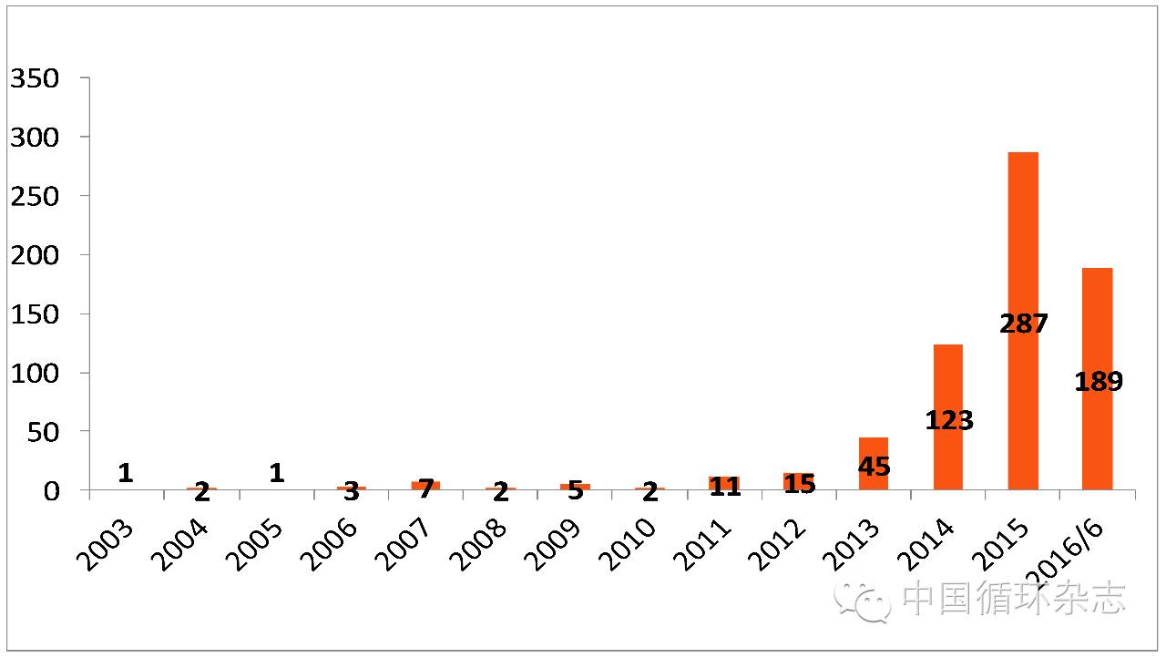 图2003~2016年脑死亡供心应用情况(注册登记数据至2016年6月共计784例)