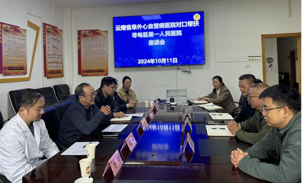 2024年10月11日,我院卢江院长助理带领第三批“省管县用”对口帮扶医疗队赴寻甸县第一人民医院开展对口帮扶工作,并与寻甸县第一人民医院领导、第二批医疗队座谈。