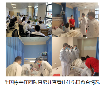 术后第二天,牛主任查看了佳佳术后的心电图、检查检验指标,并亲自带队到床旁看望了佳佳,亲切的询问了佳佳的术后情况,查看术口有无异常。在得知患者家庭条件困难后,牛主任团队又积极帮助她联系医院医疗帮扶基金,在完成审批后,顺利帮助佳佳申请到了基金支持,缓解了佳佳父母的经济压力。