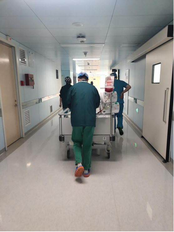 手术结束后,患者正在被送往ICU的路上