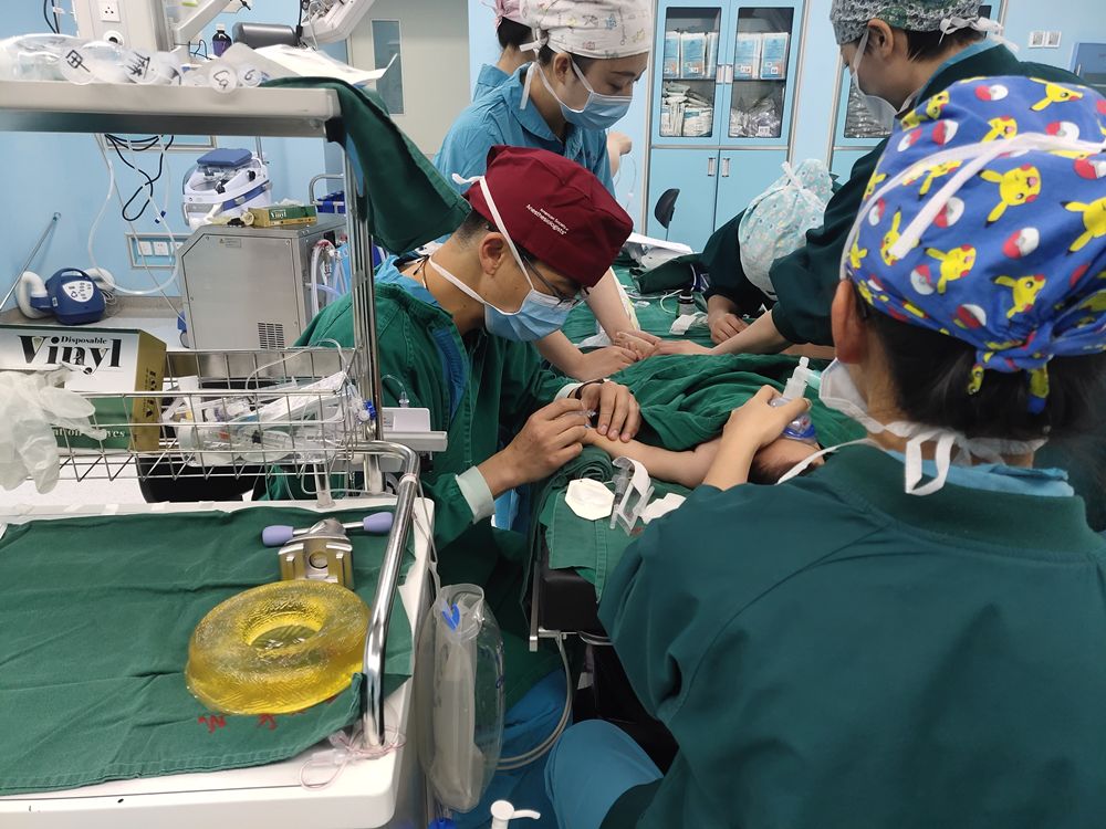 图注:麻醉医生们正在配合进行气管插管