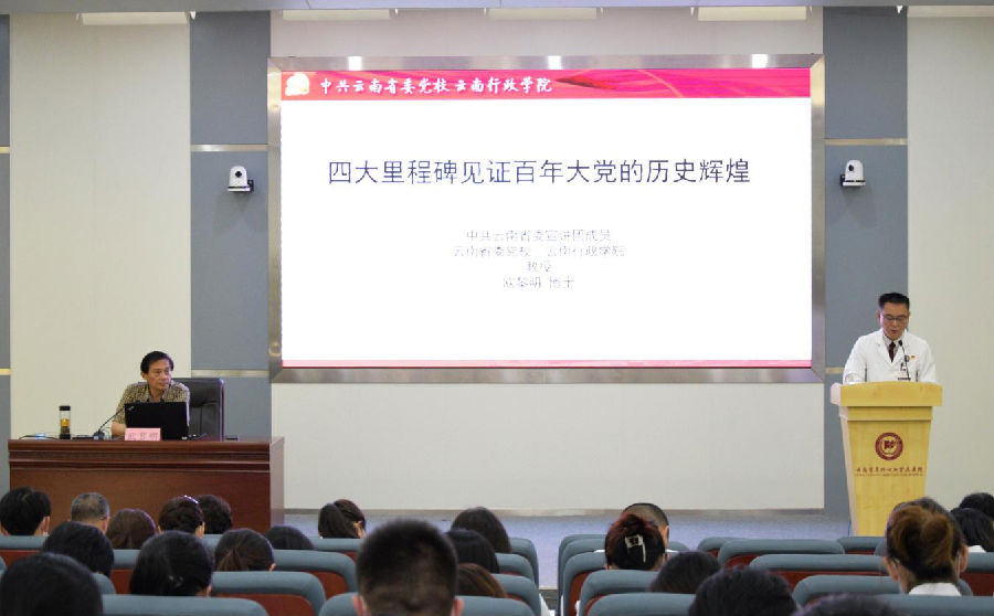 集中培训暨党史专题宣讲会邀请省委党史学习教育宣讲团成员、云南省委党校(云南行政学院)原副校长(副院长)欧黎明教授进行授课。欧教授以《四大里程碑见证百年大党历史辉煌》为题,以党的四个重要历史时期为主线,从建党的开天辟地,到新中国成立的改天换地,到改革开放的翻天覆地,再到中国特色社会主义的新征程四大里程碑事件深刻阐释了百年来我们党团结带领人民走过的艰难而光辉的历程,取得的伟大而辉煌的成就。