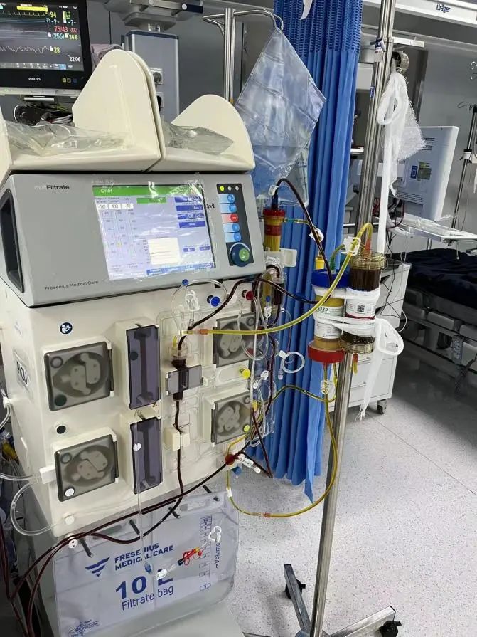 血浆置换正式开始了,随着菜籽油色的血浆从血液中剥离,呈淡黄色泽的新鲜血浆输入,阿姨渐渐的从“小金人”变为了正常红润的面色。胆红素指标也从之前的452μmol/L降至195μmol/L,大家悬着的心也总是可以平复了。
