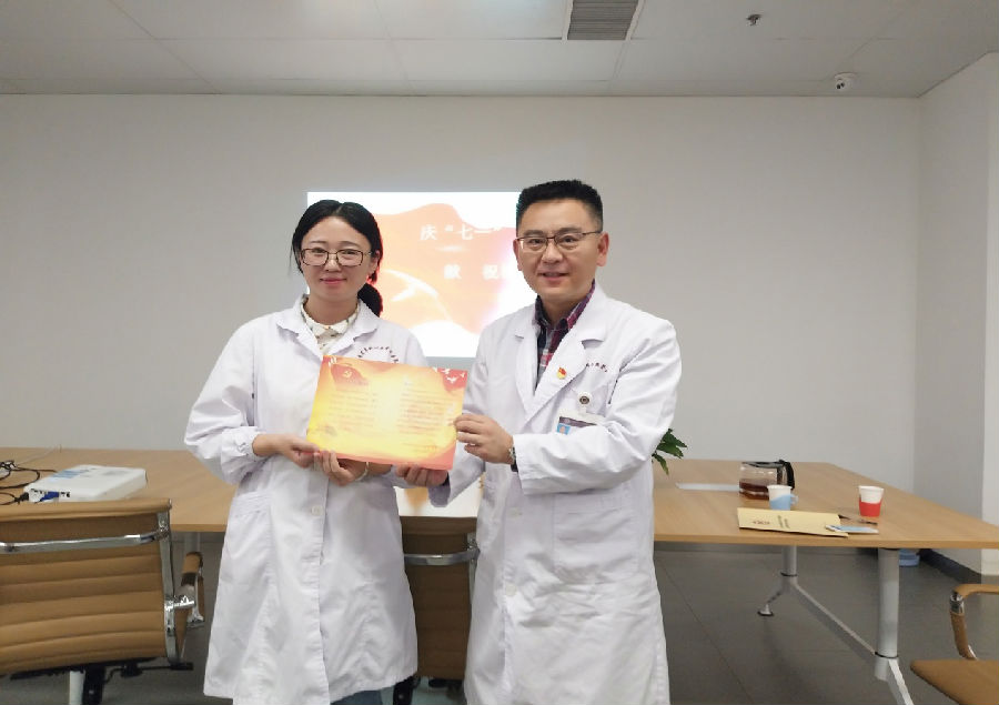 此次活动内容设计丰富,党员们共同观看了《建党节的由来》、《关于进一步激励广大干部新时代新担当新作为的意见》两个视频并进行讨论学习;付林杰同志为党的97周年建党节献上祝福;徐文秀同志与大家分享入党以来的体会及一年的工作情况,柴巍副书记为徐文秀同志赠送政治生日卡片;并进行了“党员带头为就诊卡找主人”活动。