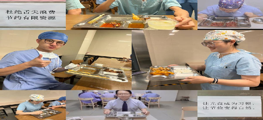 介入导管室为推进节约之风,开展了“光盘行动”,学习“交明用餐”公约,每天中午对文明就餐加强了监管,培养各位老师的交明就餐意识。在餐厅的显眼位置都粘贴了节约粮食,争做光盘达人的标签,同时大家都践行节约风尚,做到按需打饭自觉抵制铺张浪费。我科各位老师也发起了不剩饭菜,晒吃光后的餐盘行动。同时对科室夜宵餐点发起了整改措施,做到吃多少点多少,绝不浪费任何一份粮食。大家的食量不同,口味不一,便可按照需求3人点2份,夜宵剩下的包子馒头可以当做第二天的早餐。我们对每次都能践行光盘行动的老师授子一些特殊奖章,给予一些加分,杜绝 “舌尖上的中国,变为“舌尖上的浪费。