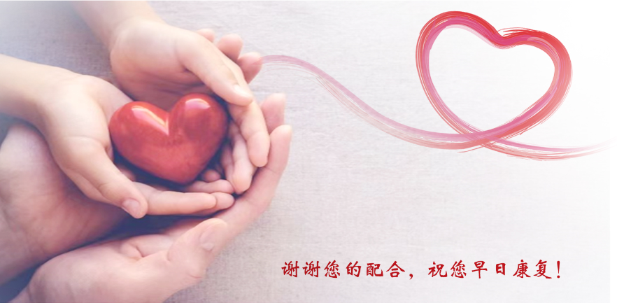◆血压波动明显,出现头晕头痛等及时至医院就诊,遵医嘱调药。 ◆出院带药的服用必须按时、按量,不可中途随意停药,换药或增减药量。漏服后不能补服,缓释片不可掰开服用。 ◆出院带药的服用方法在《诊断证明书》上有详细的说明: 每日一次 —— 早饭后30分钟服用 每日两次 —— 早、晚饭后30分钟服用 每日三次 —— 早、中、晚饭后30分钟服用 每晚一次 —— 睡前服用 二、伤口护理 ◆出院早期做好伤口的自我监测,发现有感染征兆:如严重的疼痛、红肿、有分泌物时,尽快到医院复查。 ◆患者伤口没有红肿、渗液、结痂脱落后可以洗澡(痂壳脱落前可用温水擦洗伤口以外皮肤),但不要使用刺激性肥皂,洗澡后用毛巾轻轻沾干伤口周围皮肤,不要用力摩擦。 ◆胸骨的愈合大约需要3个月(不同个体之间有差别)。 (1)胸带或腹带一般需要使用3-6个月。 (2)胸带的松紧以不影响呼吸为宜。 (3)为了促进伤口和胸骨愈合,请您咳嗽时双手抱臂保护胸骨;睡觉时取平卧位,尽量减少侧卧时间;避免手臂过度用力,牵拉伤口。 三、活动指导 您出院后可以在家开始低强度的运动锻炼,饭后1-2小时后方可开始活动。您活动的安全心率为静息心率+20次/分左右,以不劳累为原则。如出现呼吸困难、胸痛、头晕、眼花、浮肿,应立即停止活动,休息后不缓解请及时就医。 ◆术后一个月内您可以进行日常生活活动: (1)进食、梳妆、洗漱、如厕、穿衣等生活自理活动 (2)一些轻体力活动:如洗碗、扫地 (3)外出就餐和逛街 (4)简单体力锻炼:如慢走、上楼梯(尽量不要用手去拉扶手)...... ◆术后三个月内避免剧烈体力活动。中至高强度的体力活动需要等术后三个月复查得到医生许可才可进行。 四、要保持良好的生活习惯 ◆请您戒烟戒酒。吸烟会破坏您的心脏和血管,喝酒会影响您的心率。 ◆养成良好的作息习惯。避免熬夜,保证充足的睡眠。 ◆避免胸部外伤。 ◆低盐低脂低胆固醇饮食,补充充足的优质蛋白(肉、蛋、奶、豆制品等),多食蔬菜水果及富含粗纤维的食物,避免暴饮暴食。 ◆保持大便通畅,以免腹腔压力增高。 ◆保持健康的体重。确定适合您的体重范围,超重会增加心血管负担。 ◆保持积极向上的心理状态。患者和家庭需要正确面对疾病,营造一个愉快、和睦的家庭氛围;保持心情舒畅,心态平和,避免情绪过于激动。 ◆营造轻松舒适的休养环境。室内保持适宜的温湿度;根据气候变化增减衣服,避免受凉感冒。 五、警惕夹层的进展与复发 即使手术顺利,出院后您也有可能出现新发夹层、脏器缺血、动脉瘤形成或破裂等并发症。因此,请您尽量规避高风险因素,做好个人健康监测,如身体出现夹层进展相关提示“信号”时请及时就医。 避免主动脉夹层的风险因素 夹层进展时会有哪些表现? 典型的急性主动脉夹层患者,往往表现为突发的、剧烈的胸背部撕裂样疼痛。严重的可能出现心衰、意识丧失、甚至突然死亡。 六、随访复查 出院后,您需要长期乃至终身进行规律随访。 ◆根据您的病情,出院时医生会告知您复查的频率。一般出院后1、3、6、12月需要到医院复查,第6月、12月需要复查主动脉CTA,之后可能是1-2年,您遵医嘱随访即可。如有身体不适随时就医复查。 ◆您出院后2周至1月左右我们会安排随访人员电话联系您,关注您的术后康复情况。.png)