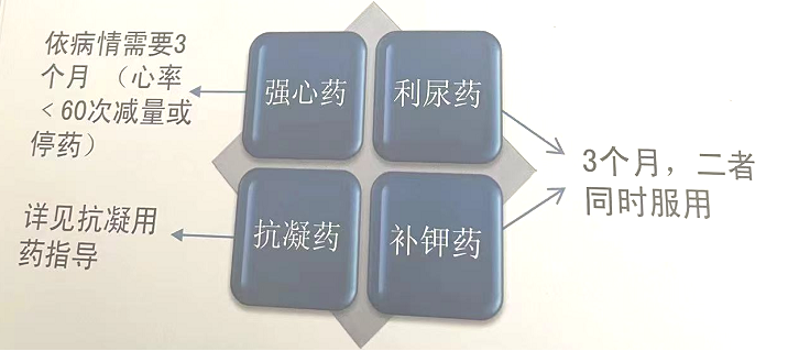 患者出院后3个月时,要做全面检查包括:超声心动图、胸部X光片、 心电图等。