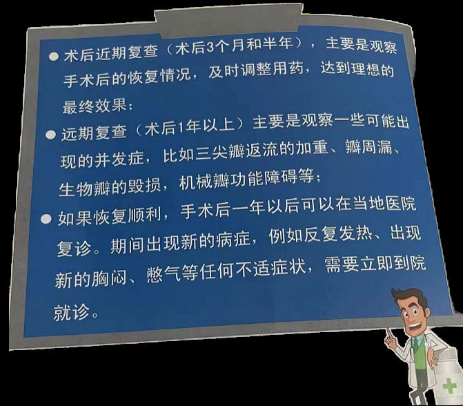 六、心脏瓣膜置换术后需严格按照医嘱定期随诊
