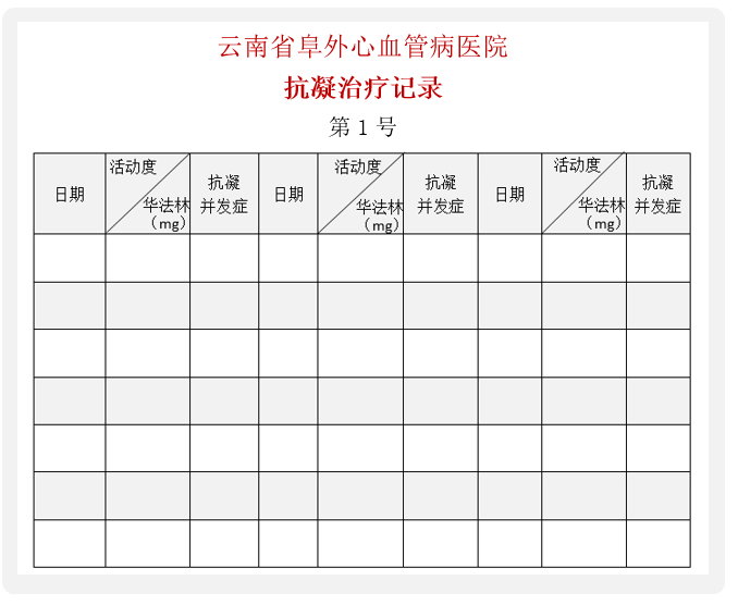 每次监测的INR值和服用华法林的剂量都要记录在登记表上,方便您寻找规律进行药物调整。