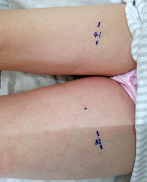 ◆注意患肢温度、皮温及肿胀程度。急性期每日测量并记录患肢不同平面的周径,并与前日记录和健侧周径相比较,以判断治疗效果。如患肢高度肿胀、皮肤苍白或呈暗紫色、皮温降低、足背动脉搏动消失,说明有发生股青肿或股白肿的可能,应立即通知医师紧急处理。