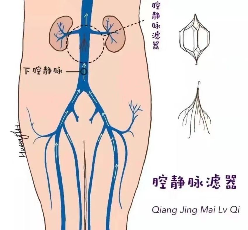 腔静脉滤器是一种保护装置,通过微创的方法置入在腔静脉里,主要目的是防止下肢或者其他部位的血栓脱落至肺血管,降低致死性肺栓塞的发生率。