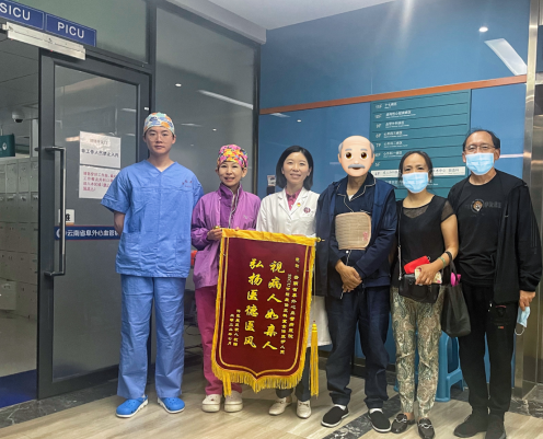 在全体医护人员的不懈努力下,许大爷身体各项指标都恢复到了正常水平,病情稳定达到了转回病房的要求。一日,SICU团队前往病房看望许大爷,一进病房就看见大爷在家属的搀扶下在病房里步行锻炼,这样的恢复效果让大家十分欣慰。“感谢云南省阜外医院外科全体医护人员对我无微不至的照料”说到动情之处,大爷不禁眼含热泪,一旁的家属也十分激动,对云阜团队高超的技术水平和细致的人文关怀表示衷心的感谢。