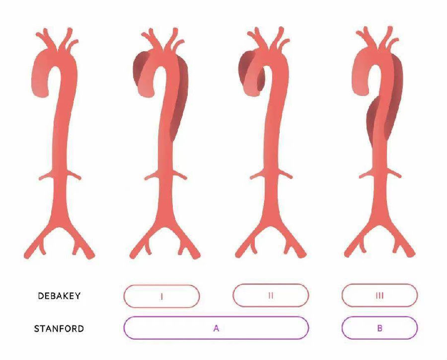 根据主动脉夹层累及范围和部位的不同,主动脉夹层分A型和B型,A型主动脉夹层累及升主动脉,是最凶险的类型,该型非手术治疗的死亡率非常高,如果不能及时手术救治,两周之内死亡率高达70%。
