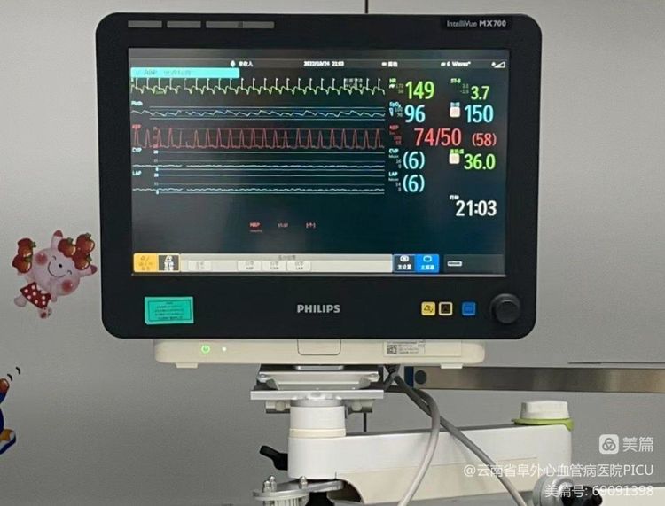 因“完全型大动脉转位,室间隔缺损,冠脉走行异常,心衰”于2022年10月18日行大动脉调转术+ECMO辅助的新生儿马囡囡,在小儿外科、PICU、麻醉、体外循环、超声科精诚合作,共同努力下,循环功能进一步好转,LVEF40%。应用ECMO辅助139小时后,今天顺利撤机。目前血压74/50mmHg,左房压6mmHg,中心静脉压6mmHg,但仍尿少,继续血液滤过和腹膜透析,云南阜外医院新生儿ECMO成功撤机。