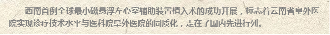 西南首例全球最小磁悬浮人工心脏植入术在云南省阜外医院完成