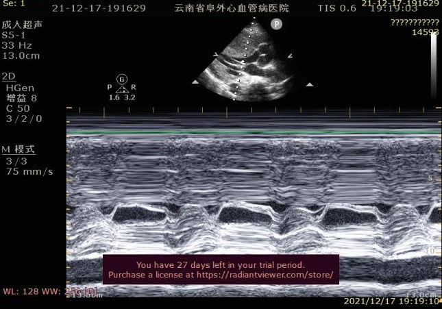 1.测量心室壁厚度:需要测量舒张末期心室短轴从心底至心尖所有节段的最大心室壁厚度,避免心室长轴M型超声斜切而高估心室壁厚度。