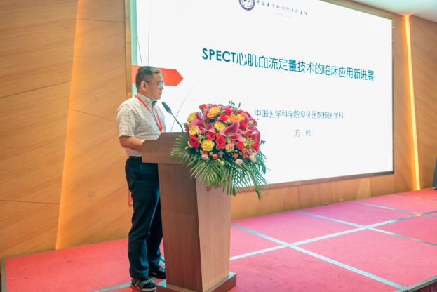 中国核学会核医学分会副理事长、中国医学科学院阜外心血管病医院核医学科主任方纬教授作“SPECT心肌血流定量技术的临床应用新进展”专题讲座。指出:心肌血流定量技术CFR作为冠心病诊治的方向性的关键技术要点,SPECT对心肌血流定量测定与其他方法比较具有更稳定,重复性更好,更简便易行的优势。方教授从显像设备、药物、技术参数等方面对SPECT心肌血流定量测定的可行性、准确性、性价比做了详细分析。同时也指出SPECT心肌血流定量技术可提高多支病变“平衡性”缺血的诊断灵敏度、提高冠脉临界病变心肌缺血的诊断准确性、CFR对于冠脉微血管病变的检测具有独特的临床意义。为以后核医学心血管诊疗向临床转化提供了技术指导。