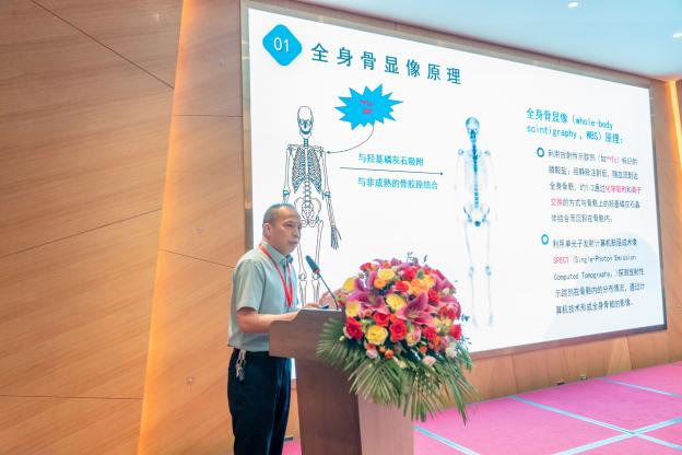 云南省医学会核医学分会主任委员、云南省核医学医疗质量控制中心主任邓智勇教授作“全身骨显像在肿瘤医院的运用推广和发展”专题讲座。邓教授从骨显像的原理、临床应用范围、优势及目前全国骨显像的开展情况着手,以云南省肿瘤医院核医学科骨显像应用的经验及管理要点结合相关病例、数据详细的就行了讲解,并嘱做好好每一次显像质控,以及随着新型特异性显像剂的出现,新型更高分辨率及灵敏度SPECT仪器设备的发展未来核医学的发展将更加光明。