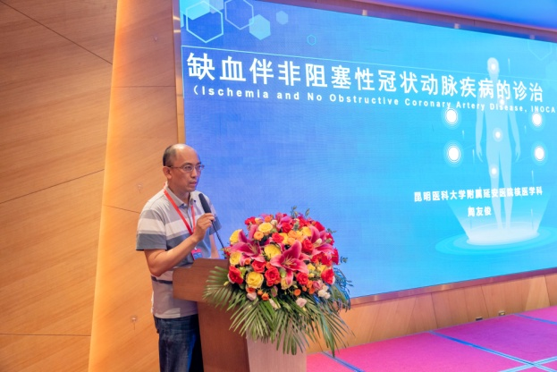中华医学会核医学分会全国青年委员、云南省高层次医学人才—医学学科带头人、昆明市延安医院核医学科主任周友俊教授作“缺血伴非阻塞性冠状动脉疾病(INOCA)的诊治”专题讲座。周教授对缺血伴非阻塞性冠状动脉疾病的概况、分型及发病机制、无创检测方法、治疗及管理作了深入简出的讲述。指出INOCA 是心绞痛的重要原因之一,常与诊断不足、治疗不足和预后不良有关。应为临床医生提供根据现有证据和当前最佳实践推荐的诊断/治疗方法。未来需要精心设计前瞻性的研究来解决INOCA患者在诊断和管理中许多未解决的问题。