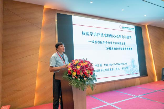 中国核学会核医学分会理事长、中国医科大学影像医学与核医学学科带头人李亚明教授作“核医学诊疗技术核心竞争力之思考—在肿瘤疾病诊治中的推荐”专题讲座。李教授从“核医学一词的再思考”中讲述了核医学的科学性、医学性;举例了它的潜力、应用现状及其中存在的不足;虽然目前核医学的各项诊疗技术在临床多个系统疾病的诊治中发挥了重要的价值。要发展自我诊疗技术的核心竞争力,纳入相关学科的指南、规范、诊疗路径,以及核医学基本理论的不断自我完善和持续的创新,认识自我诊疗技术的可及性是目前核医学发展的关键。