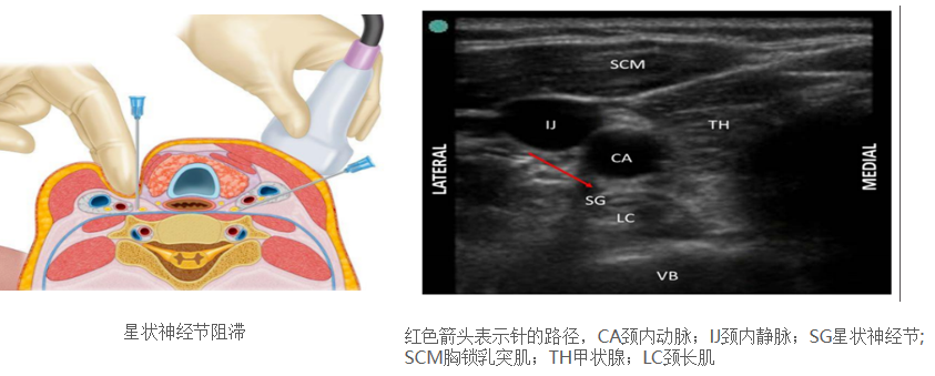 1.有研究表明,SGB有效地减弱了超过一半患者的电风暴,没有手术相关的并发症。对于其他治疗无效的患者,可用于稳定心室节律。首选单侧阻滞(左侧)手术,因为它需要更短的时间,更适合于意识清醒或急诊患者的手术。在未插管的患者中,由于膈神经阻塞和呼吸窘迫的风险,不考虑双侧SGB。双侧SGB仅在全麻且对单侧阻滞无反应的患者中进行。