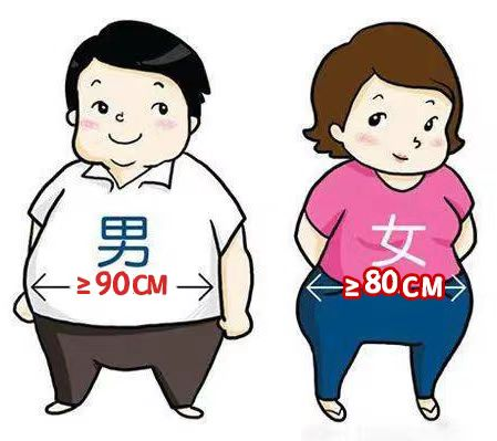 男性腰臀比大于0.9,女性腰臀比大于0.8