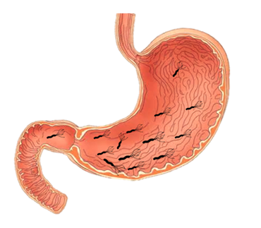 目前所知能够在人胃中生存的细菌,在胃内呈“灶状”分布。