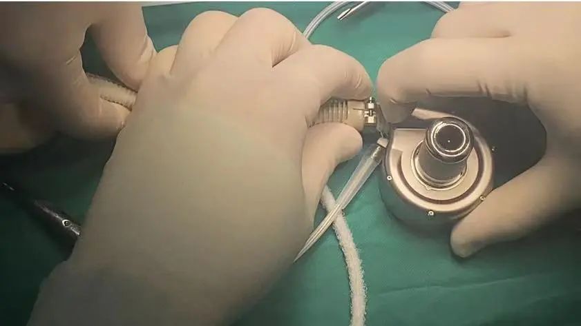 术中,在胡盛寿总院长的带领下,手术团队精密配合,每一个环节都做到了完美,在最关键的部分,医生将升主动脉与人工心脏的出血管进行吻合,随后在心尖部打孔并缝合“人工心脏”的入血管,连接泵体,“人工心脏”开始了它的运转。两台手术平均用时4.5小时。