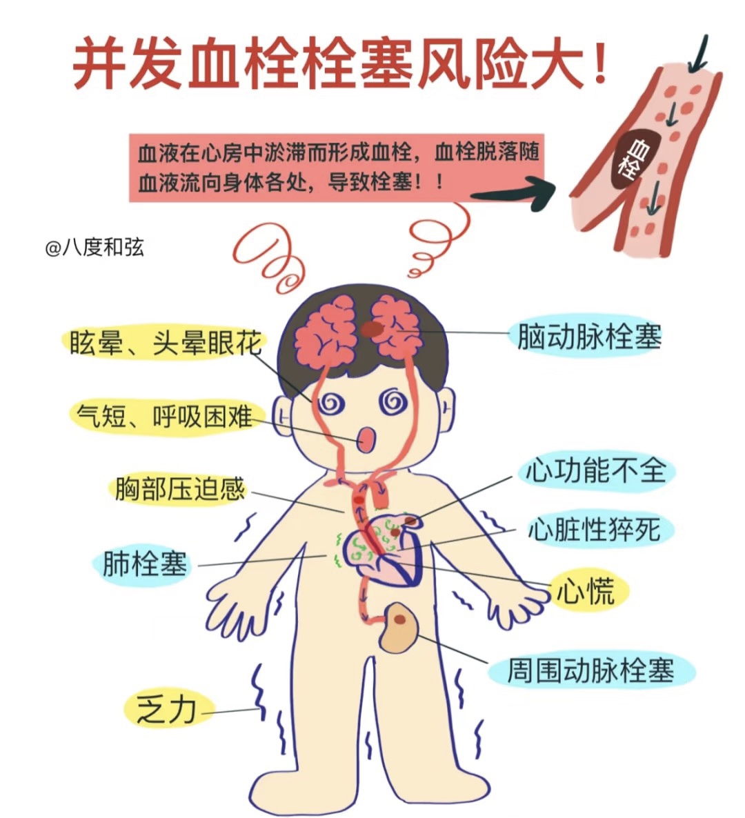 隐匿性房颤虽然无明显症状,但其对身体的危害却不容忽视。由于心房的电活动异常,导致心脏的跳动不规律,心房的收缩变得无序,心脏的泵血功能受到影响。这可能导致血液在心房内滞留,形成血栓。血栓一旦脱落,可能会引发中风、肺栓周围低敏栓赛塞等严重后果。此外,隐匿性房颤还可能引起心功能不全、认知功能下降等并发症。