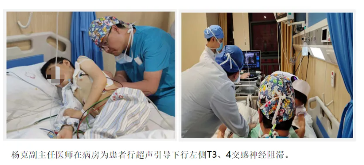 2.另外,左心交感神经去支配(CSD),通过手术切除外源性交感神经链可减轻室性心律失常的负担;然而,在有电风暴的病人中很难执行,所以杨克副主任医师采用的是超声引导下行左侧T3、4交感神经阻滞。