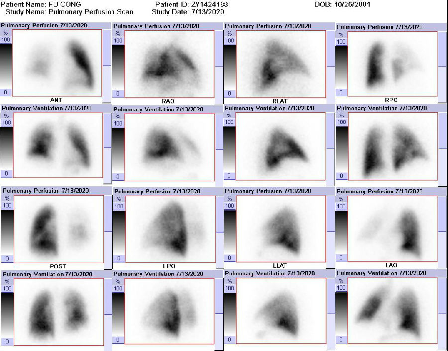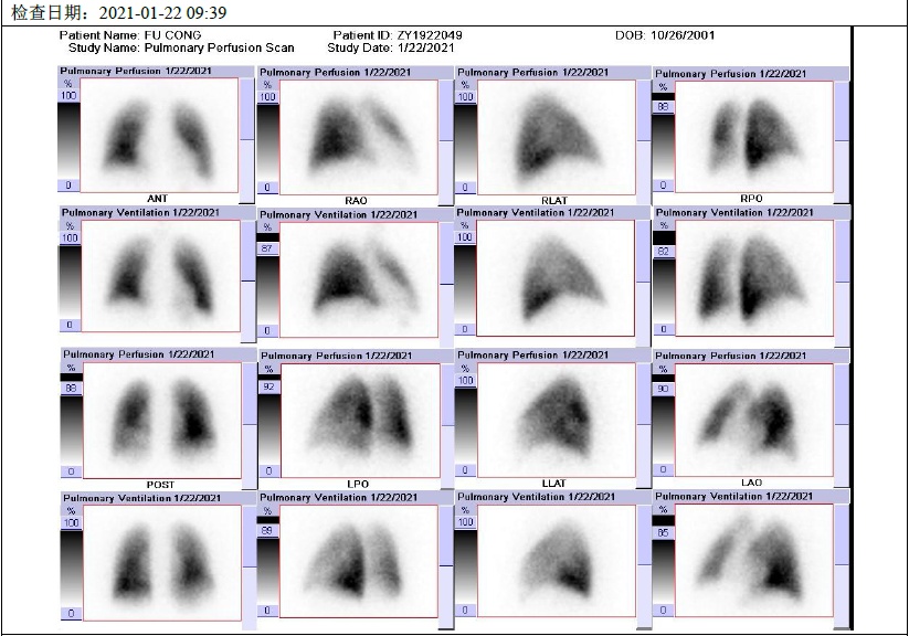 针对患者的血栓右侧为主,须排除肺血管肿瘤的可能,随即进行了PETCT检测,发现患者为为慢性血栓。