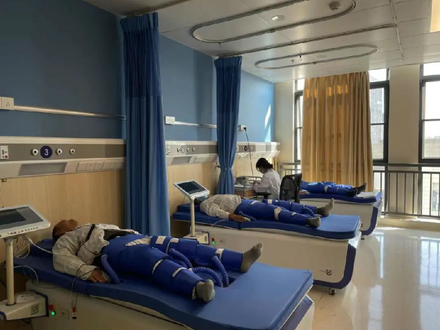 体外反搏是一种无创循环辅助治疗方法,通过气囊体外有序的加压下半身,使舒张期回流心脏的血流增加,收缩期心脏射血阻力降低,辅助心脏做功,改善血液循环,增加心、脑、肾等器官的血流灌注。