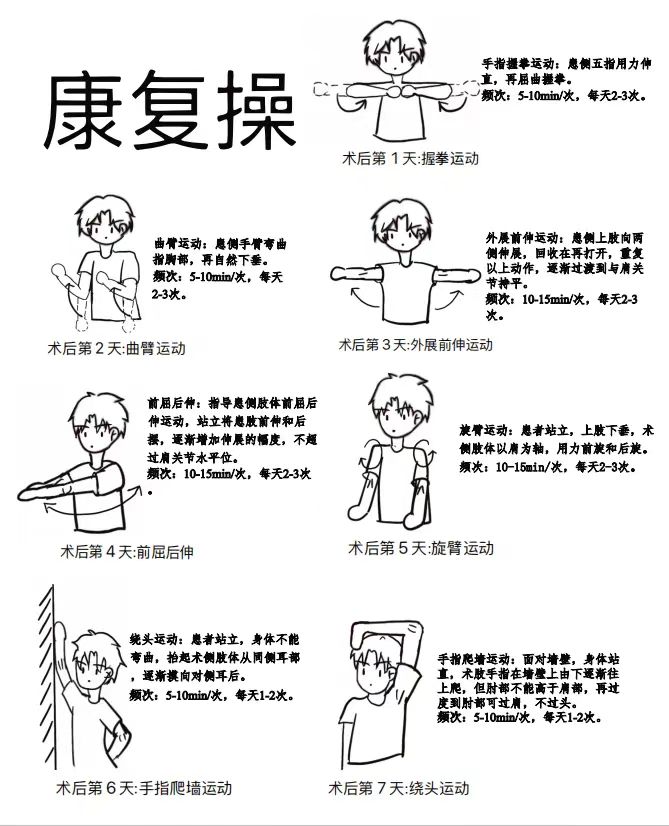 术后第二天可下床活动后,并做起搏器康复操,按照下图进行: