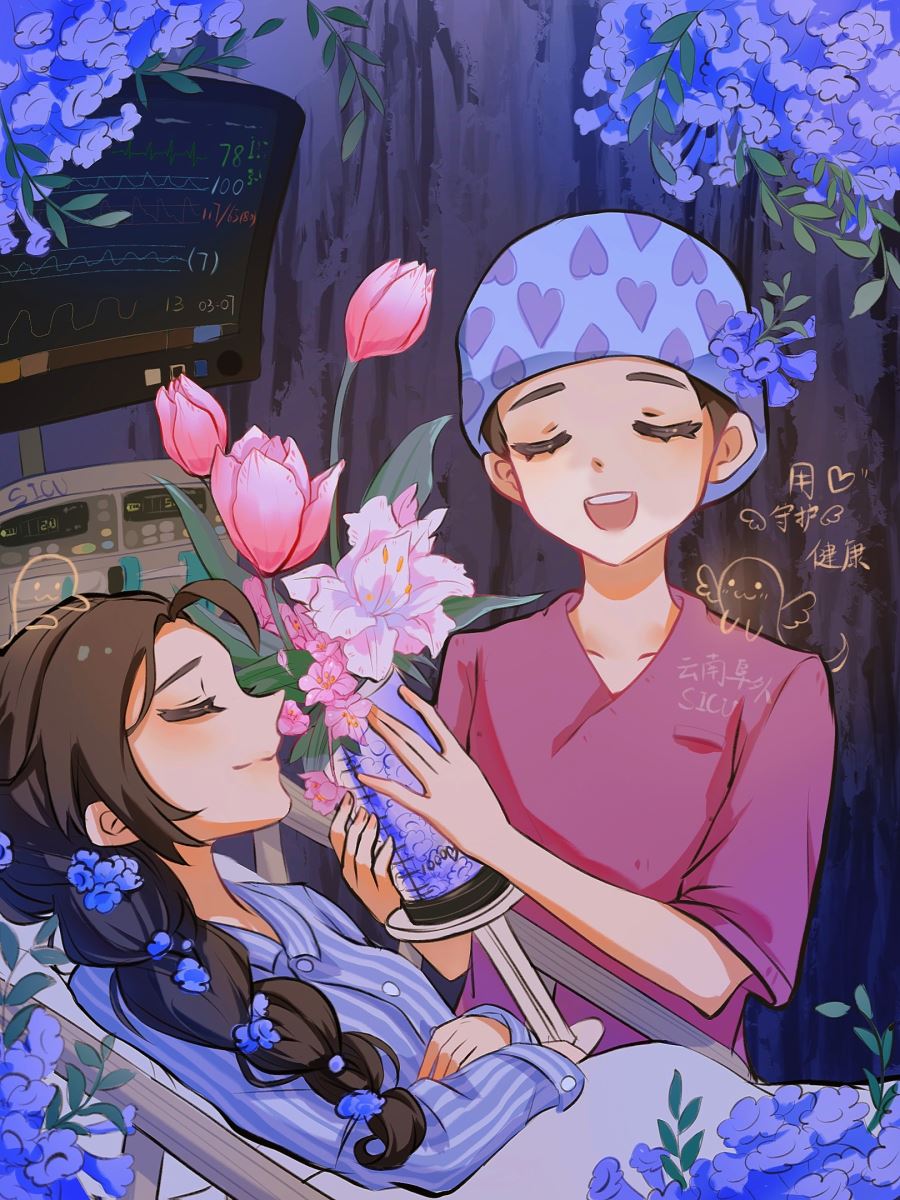 五月的风裹着蓝花楹的清香翩然而至,那些蓝紫色的花瓣轻落在SICU的窗台,仿佛为生命的战场缀上一抹温柔的注脚。在这繁花盛开的五月,我们向重症监护室中日夜奋战的护士兄弟姐妹们道一声:辛苦了!你们是蓝花楹般静默而坚韧的存在,用细致与温柔托起无数生命的微光。