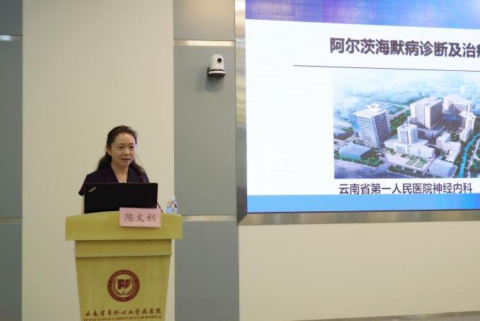 云南省第一人民医院神经内科副主任,博士,主任医师,硕士生导师,中华医学会神经病学分会神经心理与行为神经病学组委员陈文利教授作“阿尔兹海默病诊断及治疗进展”专题讲座。陈教授从一位资深的神经内科医生的角度,详细地介绍了AD的病因学分类、目前AD发病的致病机理、临床表现、诊断AD的相关辅助检查、AD的治疗等,从临床更深刻且全面的角度去解读AD研究及治疗展望。