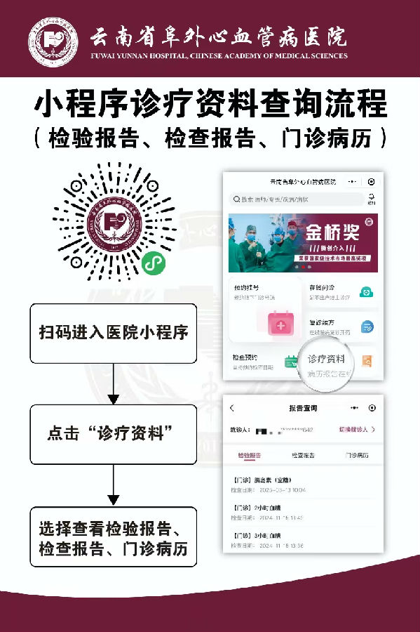 云南省阜外心血管病医院小程序诊疗资料查询流程